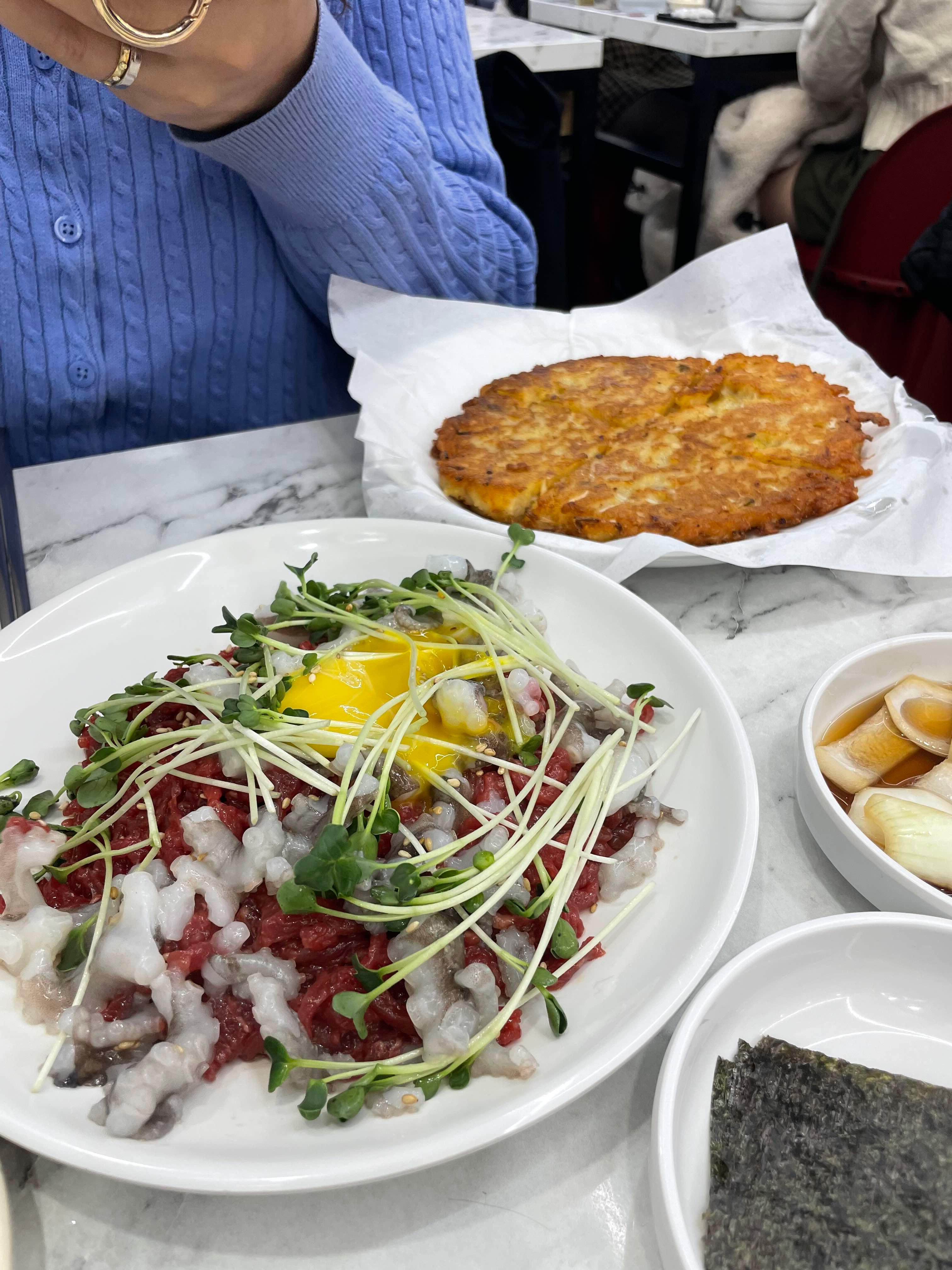 “광장시장 오면 창신육회는 그냥 들러야 함.”