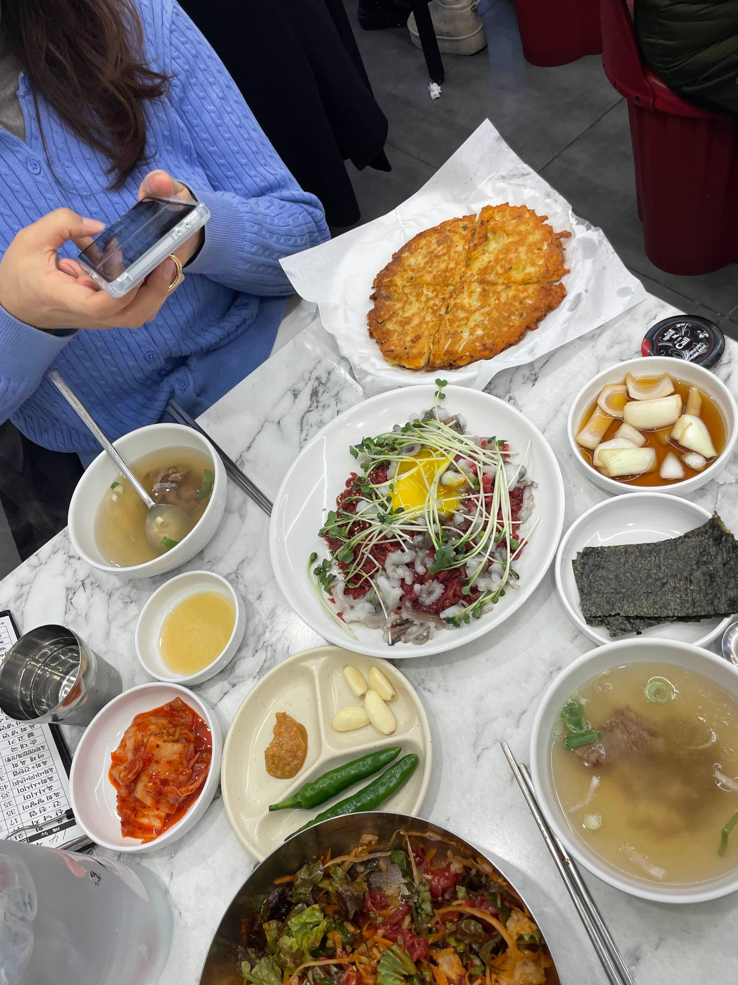 이번엔 또 창신육회에서 육회탕탕이, 육회비빔밥, 빈대떡 세트로 먹고 왔습니다.